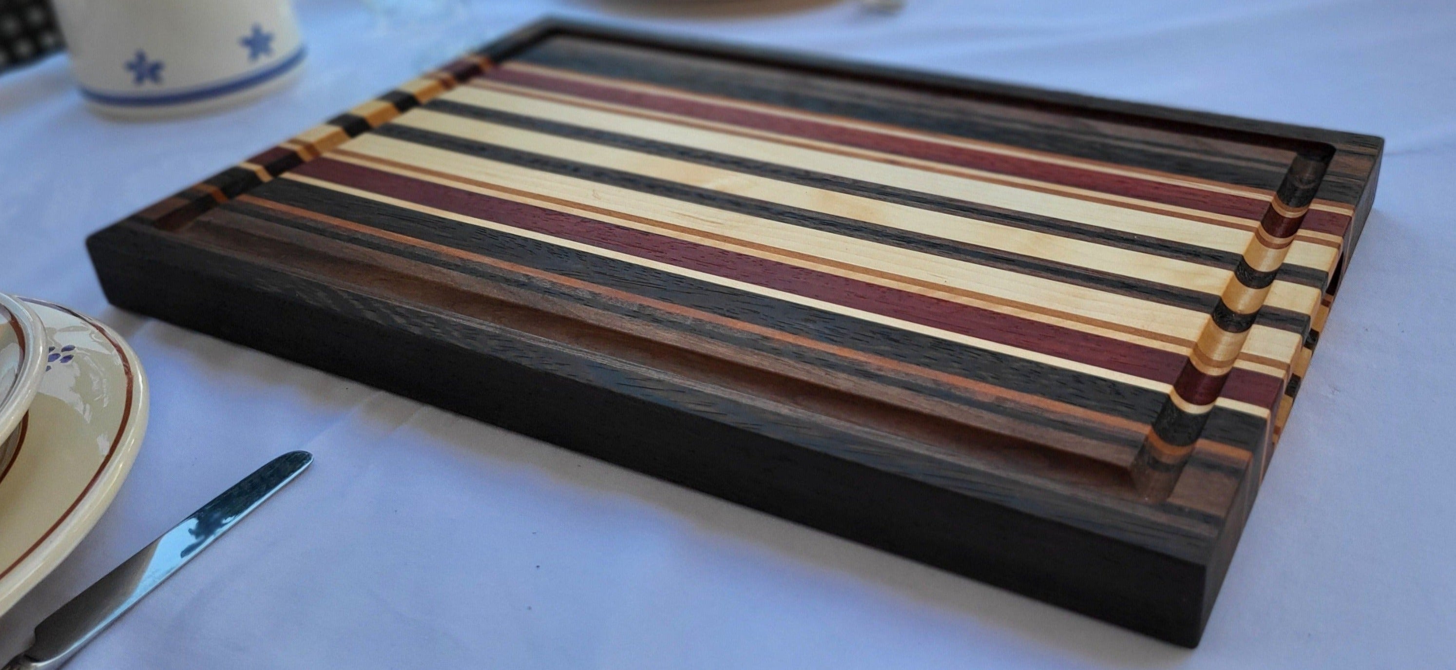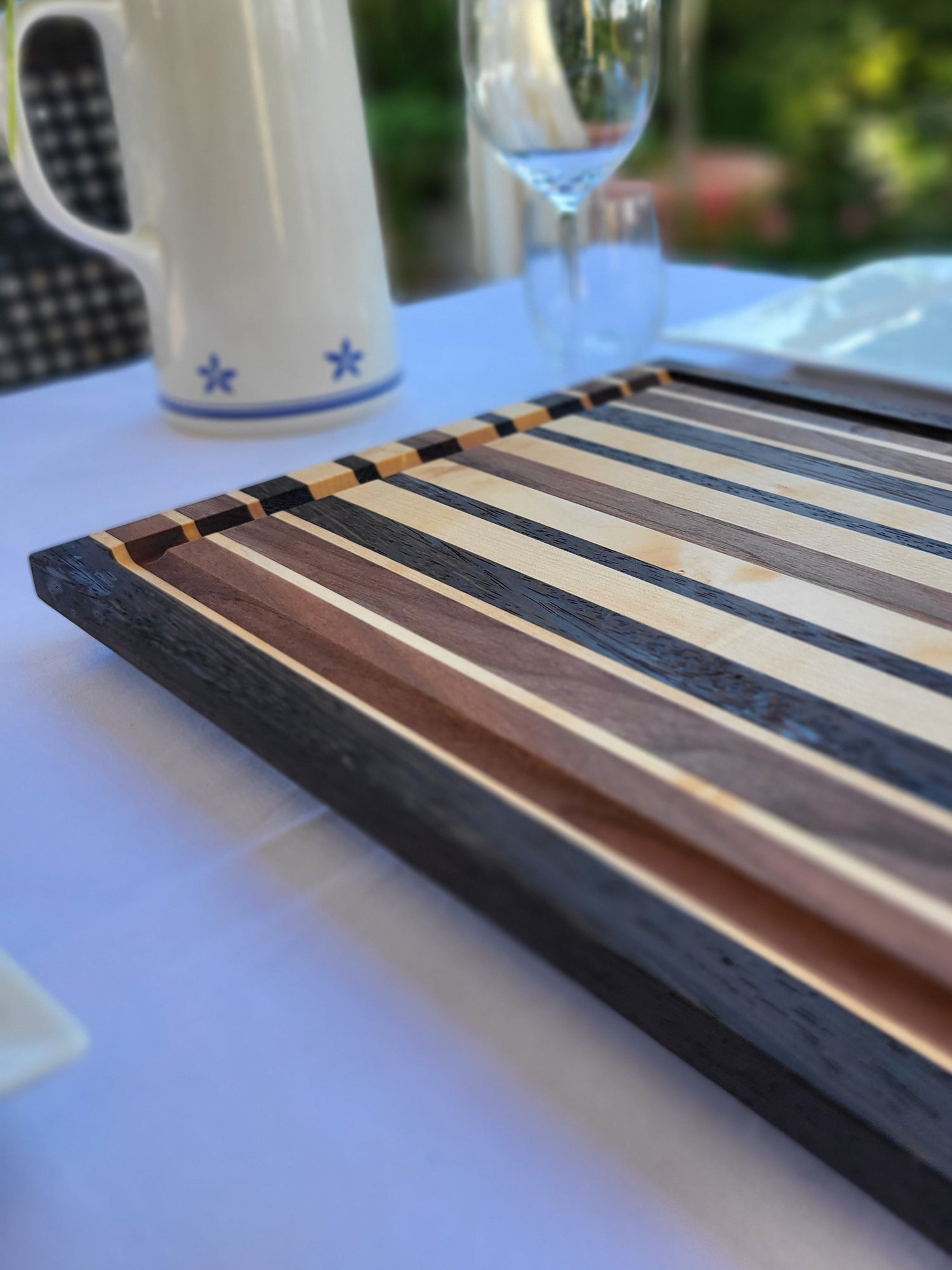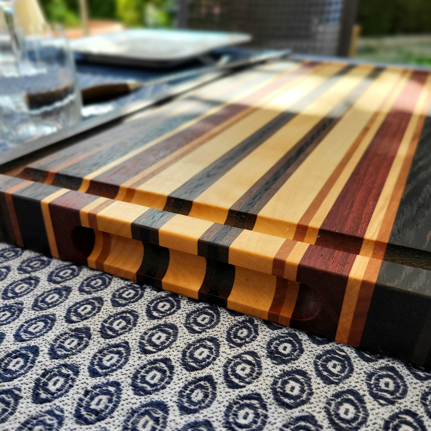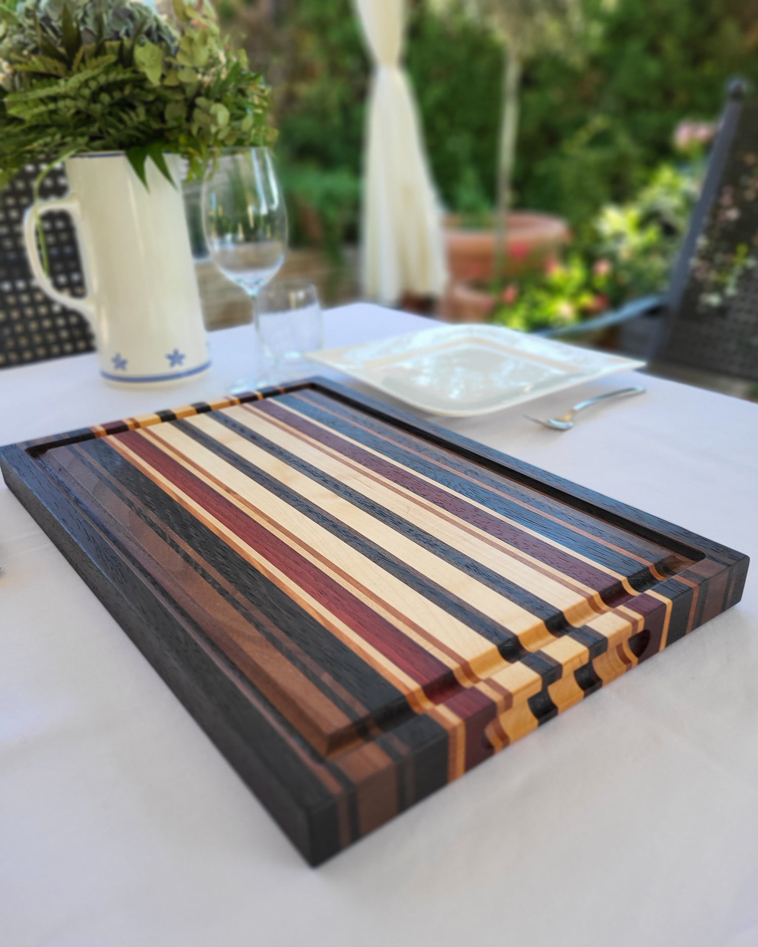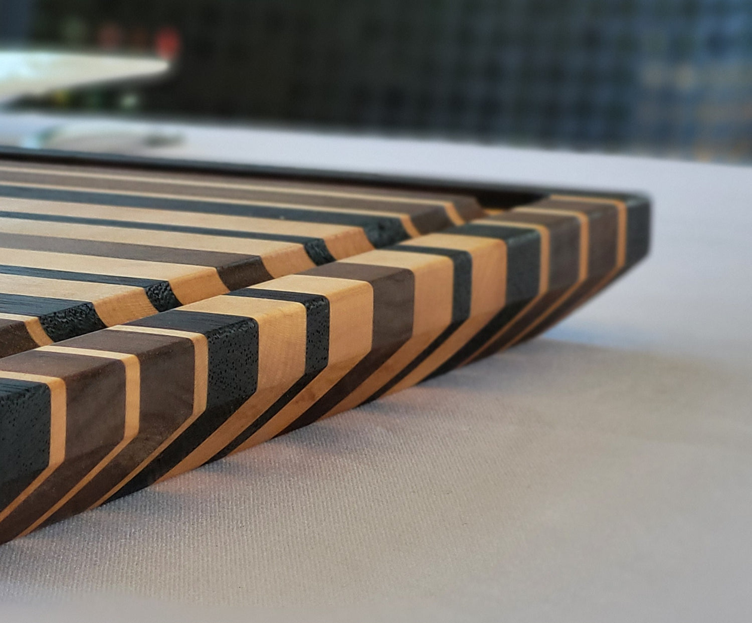 Premium Schneidebrett "Evidenge" (Nussbaum, Ahorn, Wenge und Padauk)